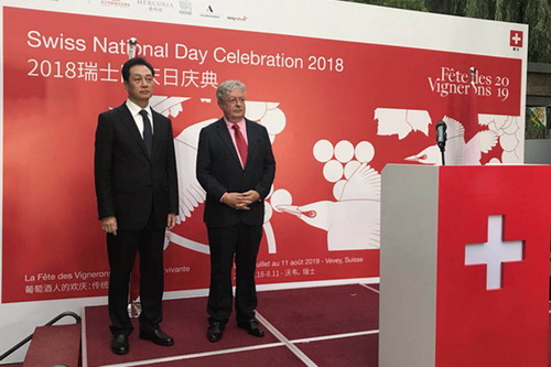 2018年8月1日,外交部副部长王超应邀出席瑞士驻华使馆举行的国庆招待会,并同瑞士驻华大使戴尚贤就中瑞关系等交换意见。
