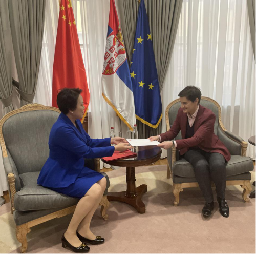2022年10月28日,驻塞尔维亚大使陈波拜会塞总理布尔纳比奇,转交李克强总理的贺电,祝贺布尔纳比奇连任总理。布尔纳比奇对此表示感谢。