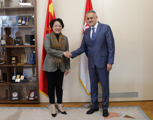 2022年12月7日,驻塞尔维亚大使陈波拜会塞新任体育部长加伊奇。