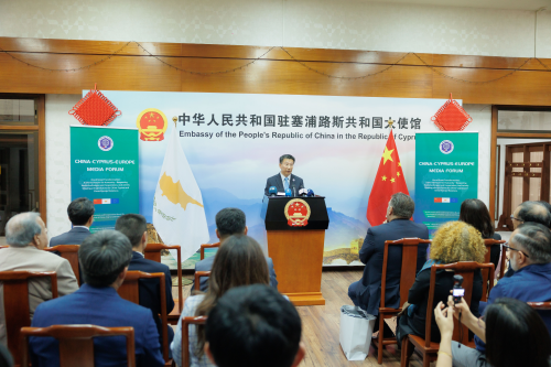 今天,我们相聚于此,共同见证中国—塞浦路斯—欧洲媒体论坛的隆重开幕。我谨代表中国驻塞使馆,对各位媒体、政府、高校、智库、企业代表的到来表示热烈欢迎!向论坛联合主办方、支持单位致以诚挚谢意!