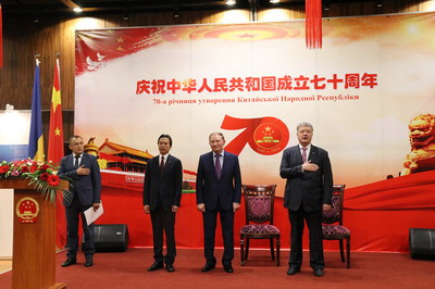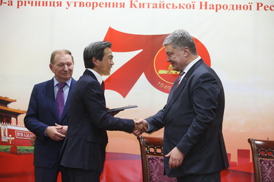 为表彰和鼓励长期以来为中乌关系发展作出重要贡献的乌各界友好人士,杜伟大使在招待会上代表驻乌使馆向乌克兰前总统库奇马、波罗申科等颁发了“中国-乌克兰友谊奖章”。随后,库奇马、波罗申科分别接受央视采访,向中华人民共和国70华诞致以诚挚祝贺,盛赞70年来中国经济社会发展巨大成就。库表示,中国70年来走过的道路值得我们致以最崇高的敬意,中国的经济、科技发展成就举世瞩目,乌克兰应不断向中国学习。波愉快地回忆起同习近平主席在达沃斯的会晤,称那次交流为双边关系的发展提供了强劲动力,表示对乌中关系的前景充满信心。