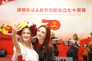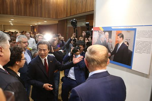 招待会现场还举办了中华人民共和国成立70周年成就图片展。整个展览分为“历史轨迹,发展成就,合作共赢”三个部分,集中展示了新中国成立以来取得的伟大成就。一组组生动的照片和画面述说着中国70年来的巨大变化,现场来宾纷纷驻足观看。在招待会现场为嘉宾准备的众多资料中,《习近平谈治国理政》一书是“大热门”,招待会开始前,摆放的近千本被一“抢”而空。