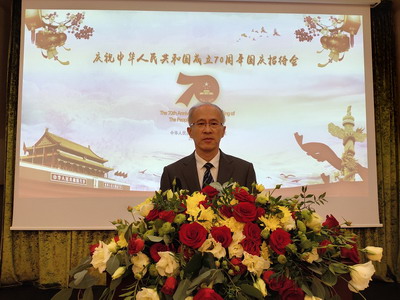 2019年9月26日,驻敖德萨总领馆在敖德萨举行国庆招待会,热烈庆祝中华人民共和国成立70周年。驻敖德萨总领事宋利群致辞,赫尔松州州长古谢耶夫、敖德萨州代州长沙塔洛娃、敖州副议长季姆乔戈洛、敖市副市长乌格里曼、乌外交部驻敖代表奥尔洛夫,驻敖领团代表、领区各界友人及中资机构、华侨华人和留学生代表近400人出席。