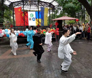 随后,当地武术协会、孔院师生先后表演了太极拳、汉服秀、中乌传统歌舞等精彩节目,博得了观众阵阵掌声。现场始终洋溢着喜庆祥和的气氛。