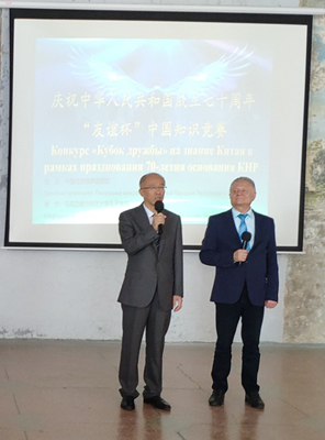2019年9月30日,驻敖德萨总领事宋利群出席“友谊杯”中国知识竞赛决赛颁奖仪式,乌南师大校长齐百经、副校长阿纳耶夫出席。