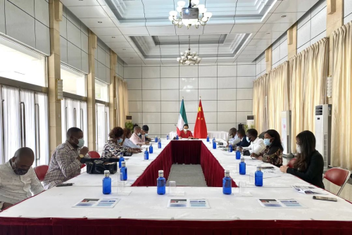 随后,亓玫大使介绍了2021年在塞内加尔举行的中非合作论坛第八届部长级会议有关情况及习近平主席提出的中非合作“九项工程”、中赤几建交52年以来双边务实合作及重要经贸合作项目。亓玫大使表示,中赤几建交以来,始终平等互利、共同发展,两国关系不断深化,务实合作取得丰硕成果,已成为南南合作的典范。相信在“九项工程”促进下,中赤几全面合作伙伴关系水平将更上一层楼。