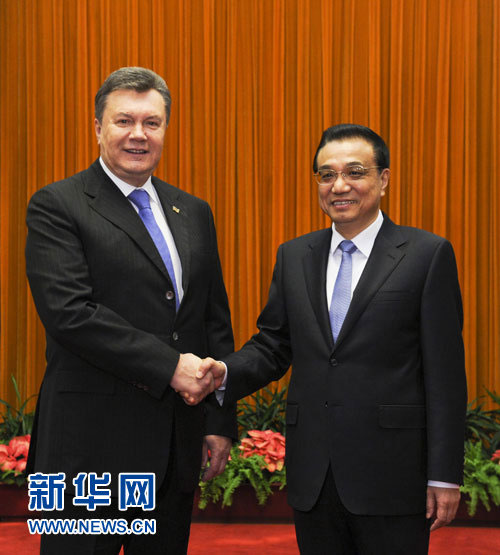 2013年12月6日,国务院总理李克强在人民大会堂会见乌克兰总统亚努科维奇。