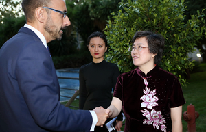 招待会现场气氛热烈友好,来宾们盛赞中国发展成就,对中西两国关系发展充满信心。招待会现场播放了《西藏时光》纪录片,工作人员还向来宾们发放了具有中国特色的纪念品。