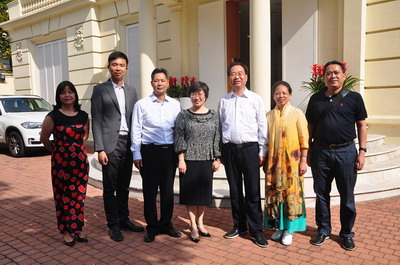 2017年10月9日,驻巴塞罗那总领事林楠在馆内会见来访的广西壮族自治区梧州市市长朱学庆一行。