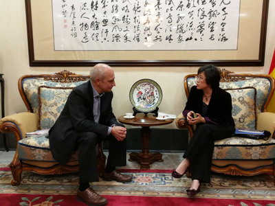 2017年11月16日,驻巴塞罗那总领事林楠会见西班牙加泰罗尼亚自治区巴达洛纳传媒公司总裁比涅塔。