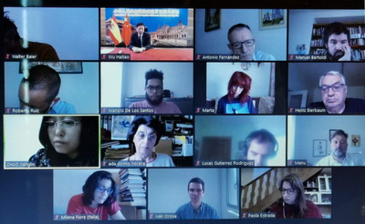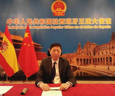 2020年7月24日,应西班牙共产党主席森特利亚邀请,驻西班牙大使吴海涛出席国际新秩序视频讨论,并就推动构建人类命运共同体理念阐述了中方的立场和主张。