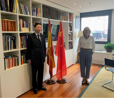 2020年9月17日,驻西班牙大使吴海涛应约会见西班牙官方通讯社埃菲社新任社长卡尼亚斯,鼓励埃菲社继续充分客观报道中国,为深化两国人民相互了解、密切双边关系架设起沟通的桥梁。