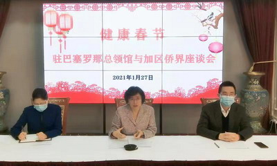 2021年1月27日,驻巴塞罗那总领事林楠与西班牙加泰罗尼亚自治区(简称“加区”)侨团和华校代表举行主题为“健康春节”的视频座谈,分析当前疫情形势,回顾总领馆2020年的领侨工作,听取侨胞的意见和诉求,并对疫情防控常态化和侨胞发展融入提出建议。近40位侨界代表参加。