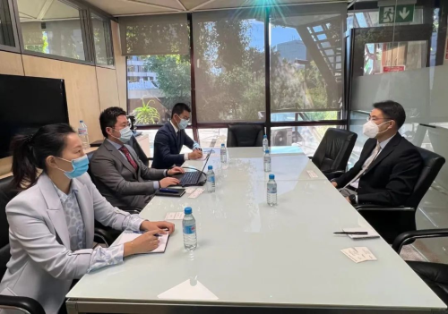 2022年5月12日,驻巴塞罗那总领事朱京阳走访西班牙加泰罗尼亚自治区(简称“加区”)中资企业宝钢西班牙公司(以下简称“宝西公司”),并与总经理颜声豪等公司负责人员举行工作交流。