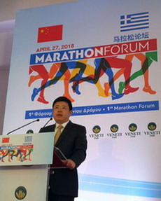 2018年4月27日, 由中希两国联合举办的首届马拉松论坛在马拉松长跑发源地—希腊马拉松市隆重开幕。驻希腊大使邹肖力,希腊文化和体育部副部长瓦西里亚迪斯,马拉松市市长普西纳基斯,中国国家体育总局田径运动管理中心社会活动部主任、中国田径协会副秘书长水涛,南京市副市长孙建友,国际马拉松及公路跑协会主席博劳、希腊田径协会主席帕纳戈普洛斯,以及部分外国驻希使节、希腊地方城市市长和代表,同来自中希两国体育界和马拉松产业的代表等共300余人共同出席。