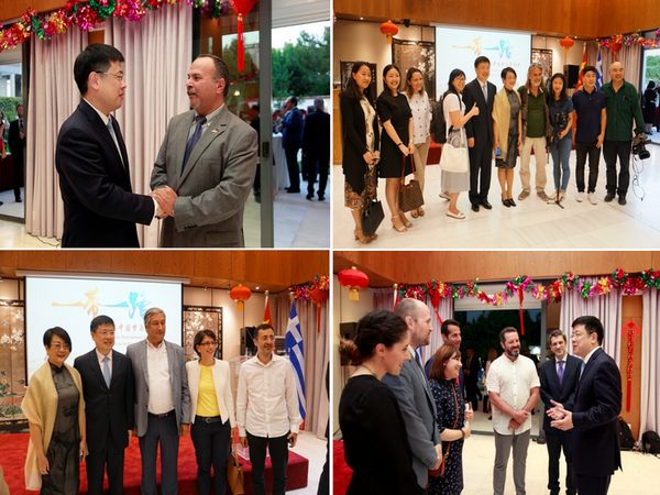 驻希腊使馆还举办了图片展,回顾了近年来两国文化交流与合作大事件和成果,来宾们纷纷驻足观看评论,气氛热烈友好。