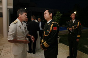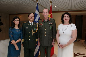2018年7月19日晚,驻希腊使馆武官许大壮大校夫妇在使馆举行招待会,热烈庆祝中国人民解放军建军91周年。希军副总参谋长弗洛罗斯中将、海军参谋长楚尼斯中将、军事法院院长戈戈斯中将、军事检察院检察长安苏利斯中将、海军舰队司令帕夫洛普洛斯中将、陆军后勤司令部司令瓦西利亚蒂斯中将、海军后勤司令部司令卡菲齐斯中将等军政要员,部分驻希使节和武官、社会各界友人、中资机构和华侨华人、留学生代表等200余人出席招待会,驻希腊使馆临时代办王强、使馆各部门外交官参加活动。