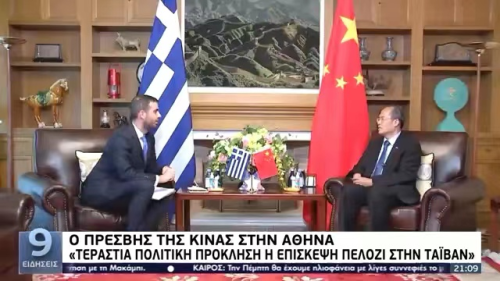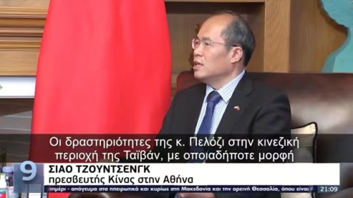 2022年8月3日,驻希腊大使肖军正接受希腊国家电视台专访,阐述中方坚决反对美国国会众议长佩洛西窜访中国台湾地区的严正立场。希腊国家电视台于当日晚间新闻黄金时段播出专访主要内容,同时在该电视台网站上发布专访详细内容。专访答问全文如下: