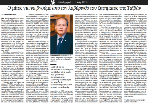 近日,驻希腊大使肖军正就美国国会众议长佩洛西窜访中国台湾地区接受希腊《每日报》专访,深刻揭批佩洛西和美国侵犯中国主权、干涉中国内政、破坏台海稳定的挑衅行为,表达中方严正立场。8月11日,该报刊登了专访内容。有关采访内容如下: