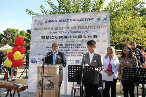 肖军正大使在致辞中表示,中国和希腊是东西方文明的杰出代表,促进中希文明交流、为世界打造文明互鉴样板,是我们两国政府和人民矢志不渝追求的目标。圣帕拉斯凯维市长佐尔巴斯表示,中华文明是人类社会发展最重要的文明之一,学习和了解中国文化和语言对青年一代未来发展至关重要。举办文化节是面向普通民众搭建的一座桥梁,有助于加深两国人文交流和民心相通。