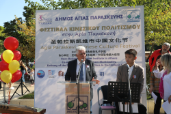 2022年10月23日,希腊首都雅典圣帕拉斯凯维市政府在中心广场隆重举办中国文化节,来自该市11所小学的学生、家长和市民等参加活动。活动由雅典商务孔子学院主办,驻希腊大使肖军正、圣帕拉斯凯维市长佐尔巴斯、副市长莱卡斯、对外经贸大学副校长洪俊杰等以线下或线上方式出席文化节开幕式。