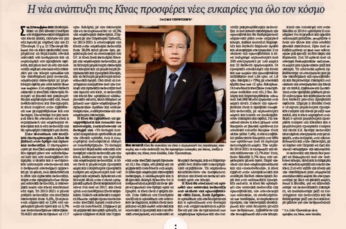 2022年11月6日,驻希腊大使肖军正在希腊主流媒体《每日报》发表《以中国新发展为世界提供新机遇》署名文章,介绍中国共产党第二十次全国代表大会精神,阐释中国式现代化为世界和平与发展带来的重要机遇。全文如下: