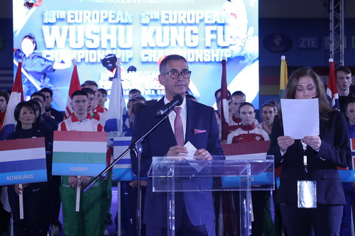 2022年11月11日,由希腊武术功夫联合会主办的第十八届“欧洲武术锦标赛暨第六届欧洲传统功夫比赛”在希腊海滨城市卢特拉基市体育馆隆重开幕。驻希腊大使肖军正、卢特拉基市副市长帕帕萨纳西奥、希腊武术联合会主席阿多亚斯托斯、欧洲武术联合会副主席格里德阿努等出席开幕式。