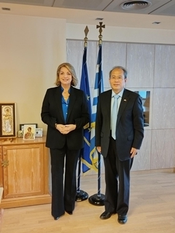 2023年1月12日,驻希腊大使肖军正会见希腊国家旅游组织主席耶雷库女士,重点介绍中方优化调整防疫措施和当前国内疫情形势,并就中希文化和旅游年、深化两国旅游合作等深入交换意见。
