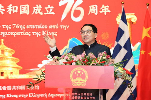 方大使在致辞中回顾新中国成立76年来取得的伟大发展成就,宣介中国人民为世界反法西斯战争作出的重大历史贡献和全球治理倡议,表示中方愿同希方赓续友谊,密切交往,深化合作,推动中希关系再上新台阶。