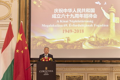 段大使在致辞中指出,新中国成立69年来,特别是改革开放以来,中国人民在中国共产党的领导下砥砺奋进,使中国走上了一条符合自身国情、具有中国特色的社会主义道路,取得了伟大的发展成就,既造福了中国人民,也为维护世界和平、促进共同发展作出了积极贡献。2013年,中国国家主席习近平提出“一带一路”倡议,以共商共建共享为原则,积极寻求与其他国家和地区的发展规划和蓝图进行对接。事实证明,“一带一路”为参与国家共享发展成果提供了新机遇,为许多国家特别是发展中国家经济增长创造了新条件,为地区人民谋福祉带来了新希望,成为中国推动构建人类命运共同体的生动实践。中国开放的大门不会关闭,只会越开越大。今年11月,中国将在上海举行首届中国国际进口博览会,目前已经有包括匈牙利在内的100多个国家的经贸实体表示将出席此次活动。相信这一盛会将为中国与各国的经贸合作搭建又一新的重要平台。