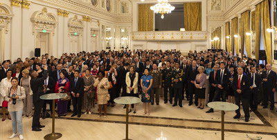 2018年9月20日晚,驻匈牙利大使段洁龙和夫人李蓓在布达佩斯科林蒂亚酒店举行招待会,隆重庆祝中华人民共和国成立69周年。匈牙利国会副主席劳多尔曹伊、外交与对外经济部国秘齐丽、匈央行副行长文迪什、国防部副国秘维泽凯尼、前外长马尔托尼、各界友人、外国驻匈使节及华侨华人、中资企业、留学生代表等450余人出席。