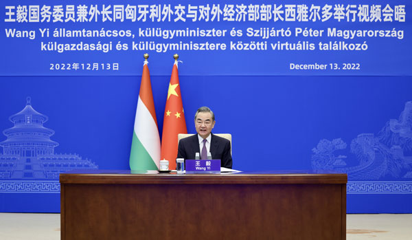 2022年12月13日,中共中央政治局委员、国务委员兼外长王毅同匈牙利外长西雅尔多举行视频会晤,并共同签署两国建立政府间“一带一路”合作委员会的协定。