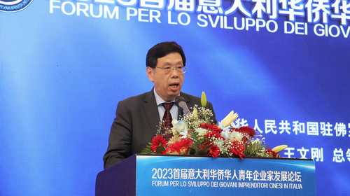2023年6月5日,驻佛罗伦萨总领事王文刚出席“2023首届意大利华侨华人青年企业家发展论坛”,来自全意范围青年企业家、侨团代表及佛罗伦萨市长代表贝塔里尼等近三百人与会。