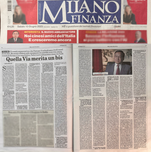 2023年6月10日,驻意大利大使贾桂德接受意大利《米兰财经报》专访,全文如下: