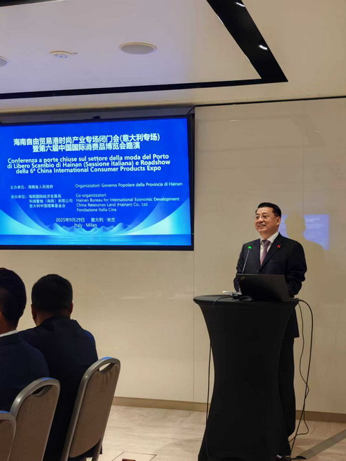 2025年9月29日,驻米兰总领事刘侃出席海南自由贸易港时尚产业专场闭门会暨第六届中国国际消博会路演并致辞。海南省常务副省长巴特尔、意中理事基金会主席波塞利等出席活动并致辞。