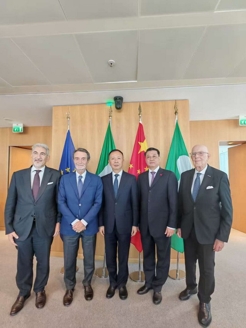 驻米兰总领事刘侃陪同海南省常务副省长巴特尔会见伦巴第大区主席方塔纳
