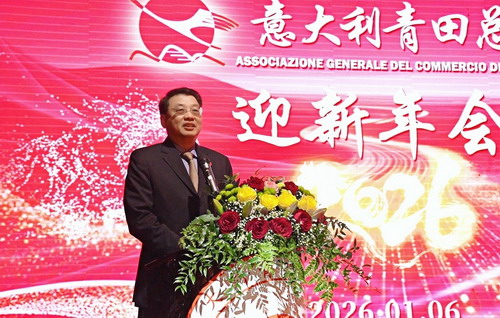 2026年1月6日,驻米兰总领事刘侃出席意大利青田总商会2026年年会。会长高泉他、侨领侨胞及意友好人士500余人参加。