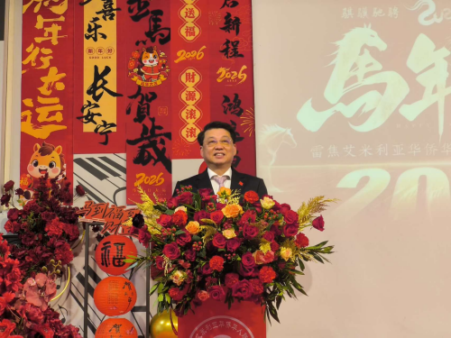 2026年1月18日,驻米兰总领事刘侃出席雷焦艾米利亚华侨华人联谊会2026年年会。会长陈增杰、雷焦艾米利亚省长赞尼、市长马萨里、侨领侨胞等300余人参加。
