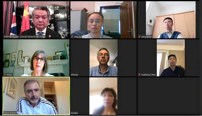 郑总领事首先感谢比尔校长和利物浦大学校方对留守中国学生的关心和照顾。暑假将至,希望留下来的同学能够在签证延期、宿舍以及生活方面继续得到校方的关照。在抗疫合作方面,我们高度评价比尔校长领导建立的利物浦大学抗疫合作平台。通过这个平台,利物浦的十个华人社团向NHS捐助了医用防护设备,西安市和华东理工大学向利物浦市提供了援助,传递了中国人民对英国人民的友好之情。