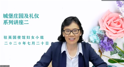 2020年7月20日,驻英国使馆妇女小组举办线上系列礼仪讲座第二讲——苏格兰城堡庄园及礼仪。英国礼仪及美饰设计师杰夫斯女士、苏格兰瑟勒斯坦城堡主人梅特兰—卡鲁先生、马奇芒特庄园主人伯奇先生应邀主讲。驻英国大使夫人兼使馆妇女小组组长胡平华女士出席并致辞,使馆女外交官及馆员、中资机构代表近60余人在线参与。