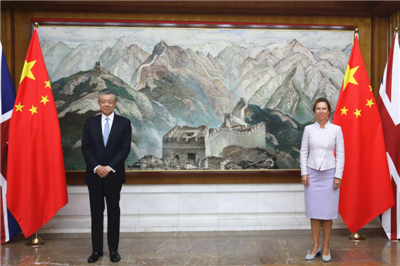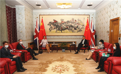 2020年9月16日,驻英国大使刘晓明在使馆会见英国新任驻华大使吴若兰。