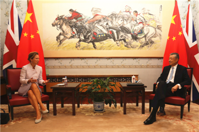吴期待赴华就职,表示中国是有重要国际影响力的大国,“全球化英国”需要与中国发展建设性关系。当前,英中关系处于关键时刻。英方愿与中方坦诚对话,深化贸易投资、“一带一路”等领域合作,加强国际协作,使英中关系更好惠及两国。吴表示愿在任内与中国各界广泛接触、增进相互了解,努力推动英中关系不断向前发展。
