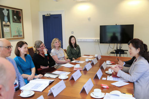 凯茜副校长欢迎张美芳总领事一行来访。她表示,奥斯特大学重视对华交流,愿与中方在艺术、医学、护理等共同感兴趣领域深化合作,并欢迎中国留学生来奥斯特大学伦敦德里校区学习深造。