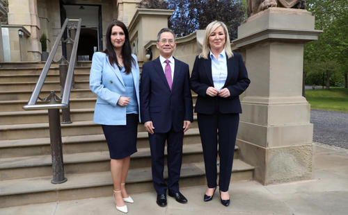 2024年5月1日,正在北爱尔兰访问的驻英国大使郑泽光会见北爱尔兰首席部长米歇尔·奥尼尔和副首席部长爱玛·利特尔—彭杰利。