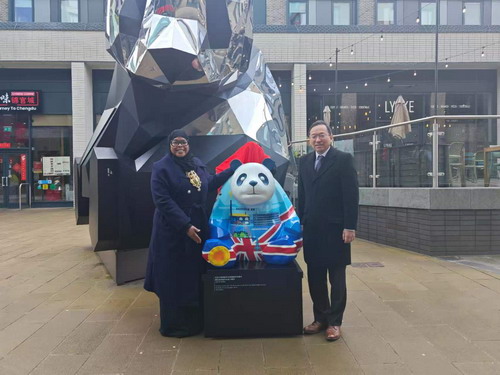 2026年2月21日,驻曼彻斯特总领事唐锐赴谢菲尔德,代表成都市向谢菲尔德市长赛义德移交象征两市友好的彩色熊猫塑像。