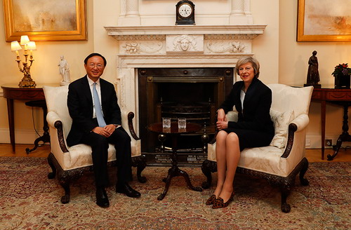 当地时间2016年12月20日,英国首相梅在伦敦会见了到访的国务委员杨洁篪。