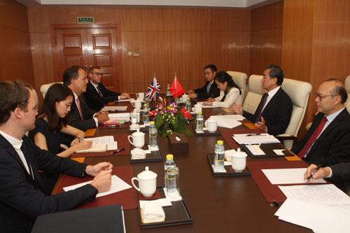 2017年8月22日,外交部长王毅在北京应约会见英国外交国务大臣菲尔德。