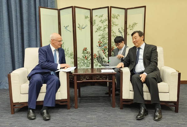 2026年4月16日,中国政府中东问题特使翟隽应约会见英国驻华大使魏磊,重点就伊朗局势交换意见。