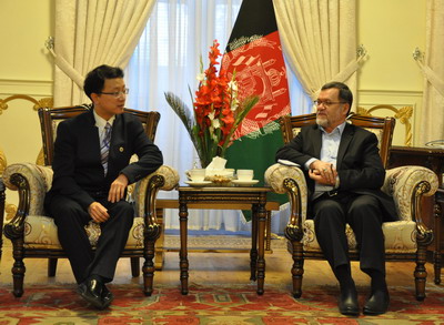 2018年1月17日,驻阿富汗大使刘劲松拜会阿富汗第二副总统丹尼什。丹尼什外事顾问纳西尔等在座。