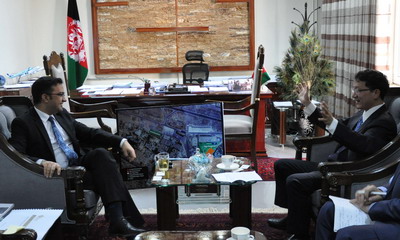 2018年1月17日,驻阿富汗大使刘劲松往见阿富汗民航局长哈比比。